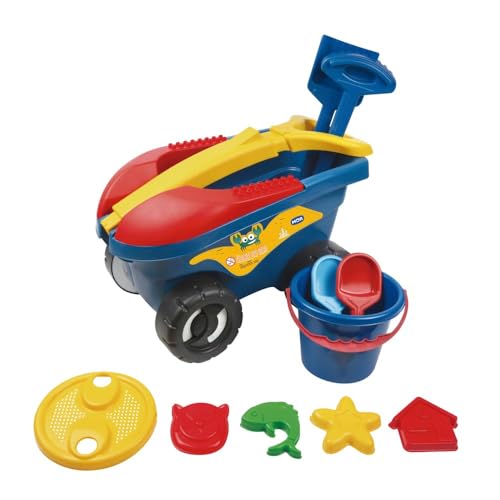 Brinquedo para meninos 1 ano que inclui um carrinho com alavanca retrátil para carregar brinquedos e 11 peças como pazinhas e baldinho.