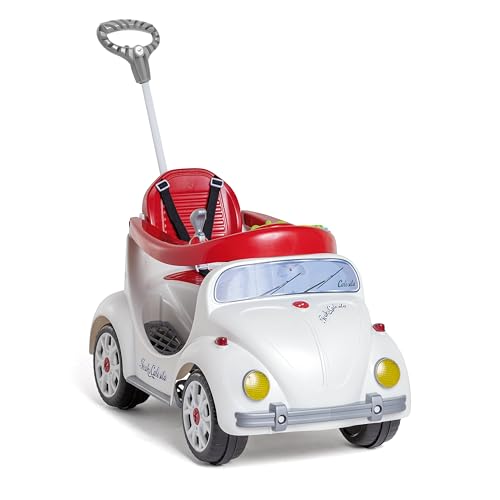A motoca para menino Fouks, inspirada no clássico Fusca, vem com atividades interativas no aro protetor e som no volante. Logo, as rodas emborrachadas geram maior aderência, e o cinto de três pontos oferece mais segurança para os pequenos.