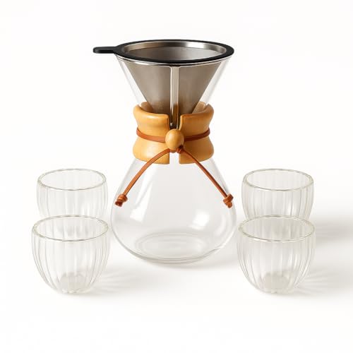 Jarra de vidro com detalhes em madeira, coador de inox e 4 xícaras. Assim, combina estética e funcionalidade, apresentando-se como um presente café elegante.