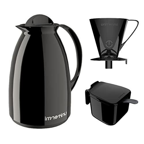 Este kit prático conta com garrafa térmica, coador e açucareiro. Ao mesmo tempo, oferece praticidade e funcionalidade, sendo um presente para quem ama cafe versátil.